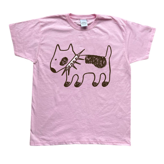 Spiky collar brown dog on pink tee