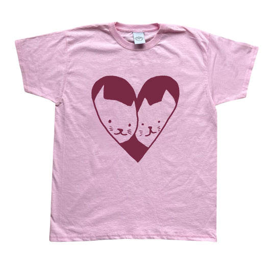 2 cats in love pink tee