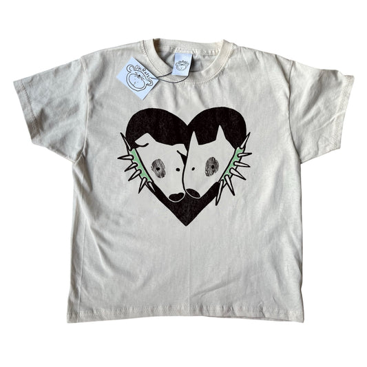 2 Spiky collar dogs in love beige tee