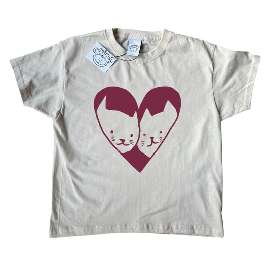 2 cats in love beige tee