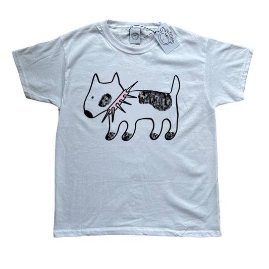 Spiky collar dog on white tee