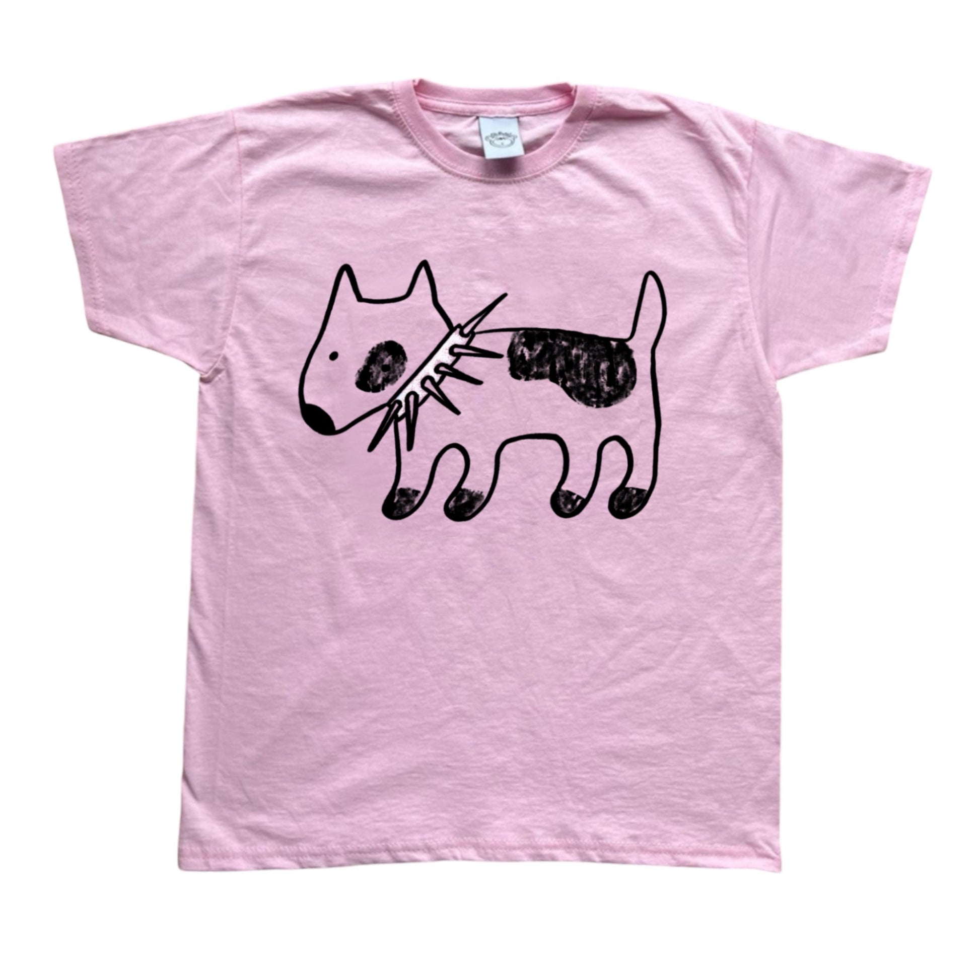 Spiky collar black dog on pink tee