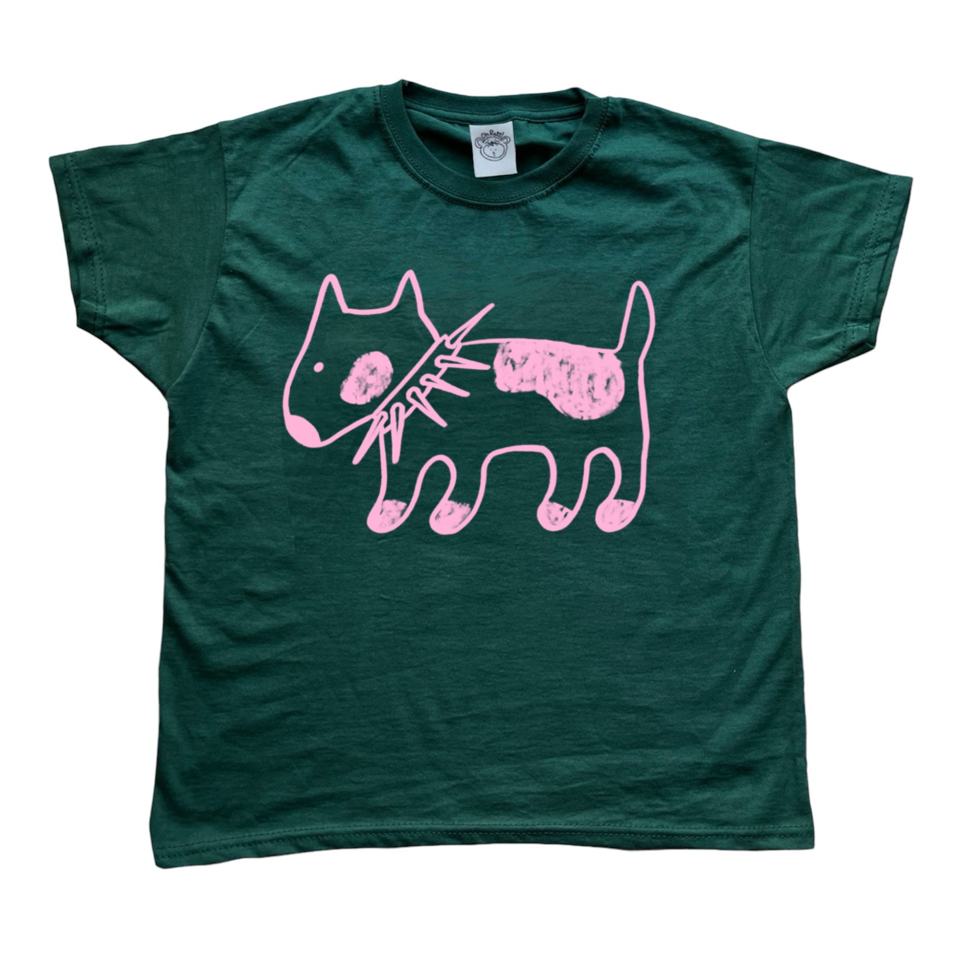 Spiky collar dog on forest green tee